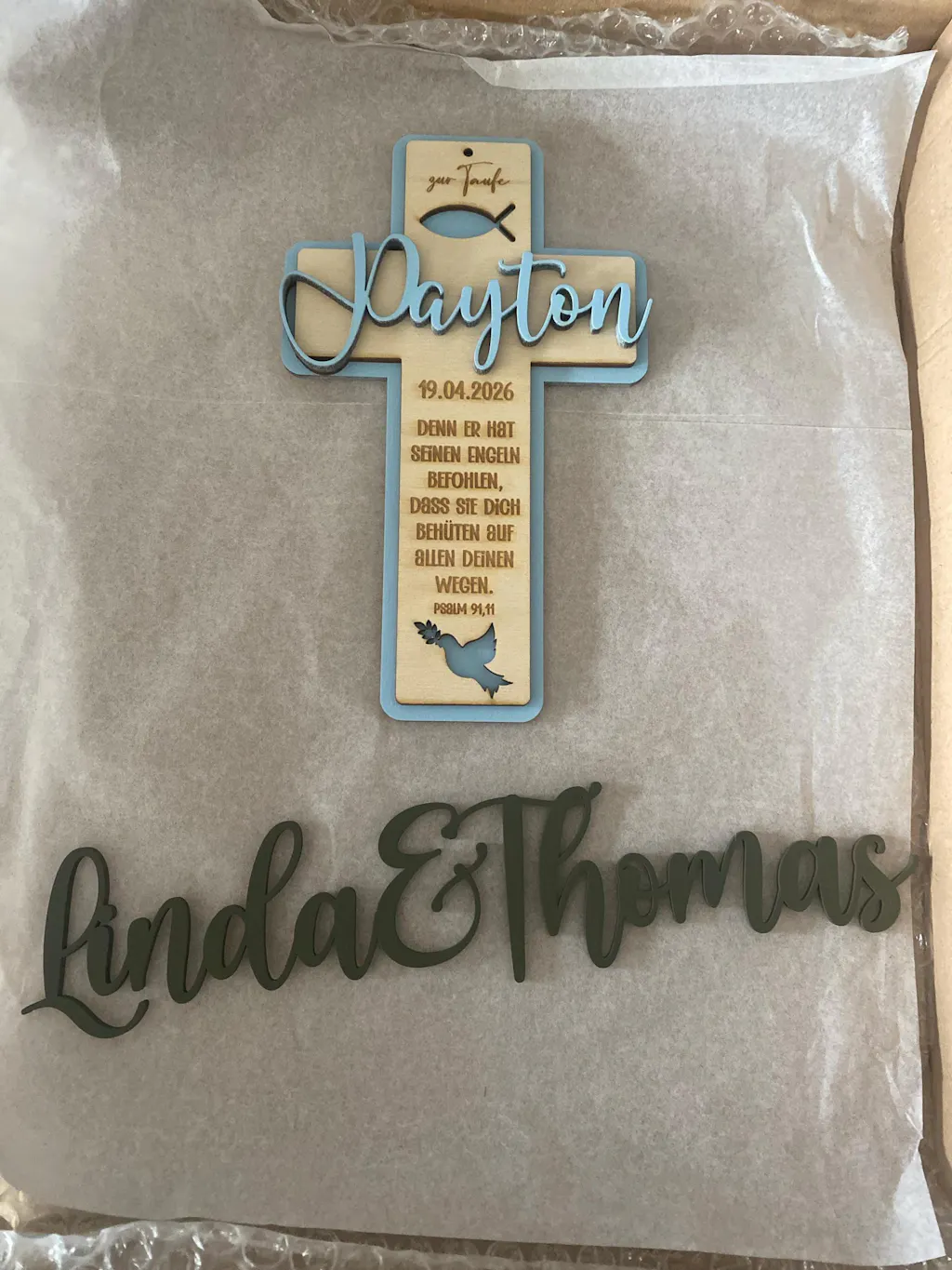 Vielen Dank für die tollen Namensschilder! Sie sehen wunderbar aus! Auch der Kontakt mit euch war unkompliziert und der Versand schneller als erwartet.