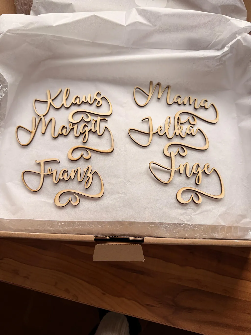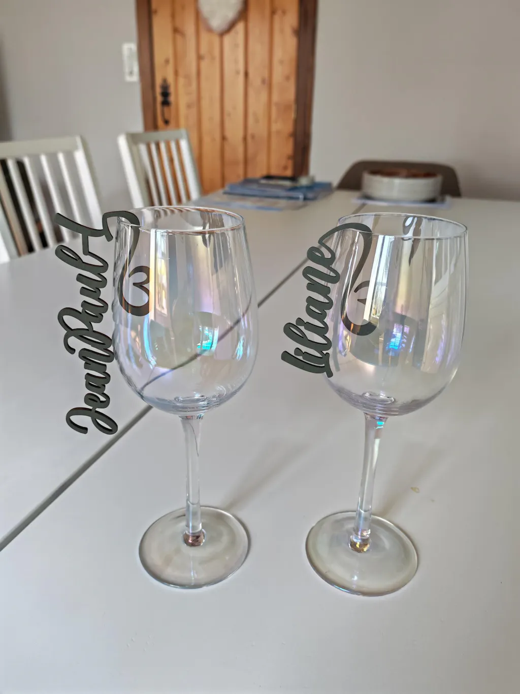 Die Anhänger sehen ganz toll aus. ich habe sie einfach in "natur" bestellt und bin absolut zufrieden. Was ich etwas schade finde ist, dass sie am Glas rutschen und man sie beim trinken eigtl. abnehmen müsste. Ich hoffe, die Gäste finden einen guten Umgang und freue mich für die schöne Deko.