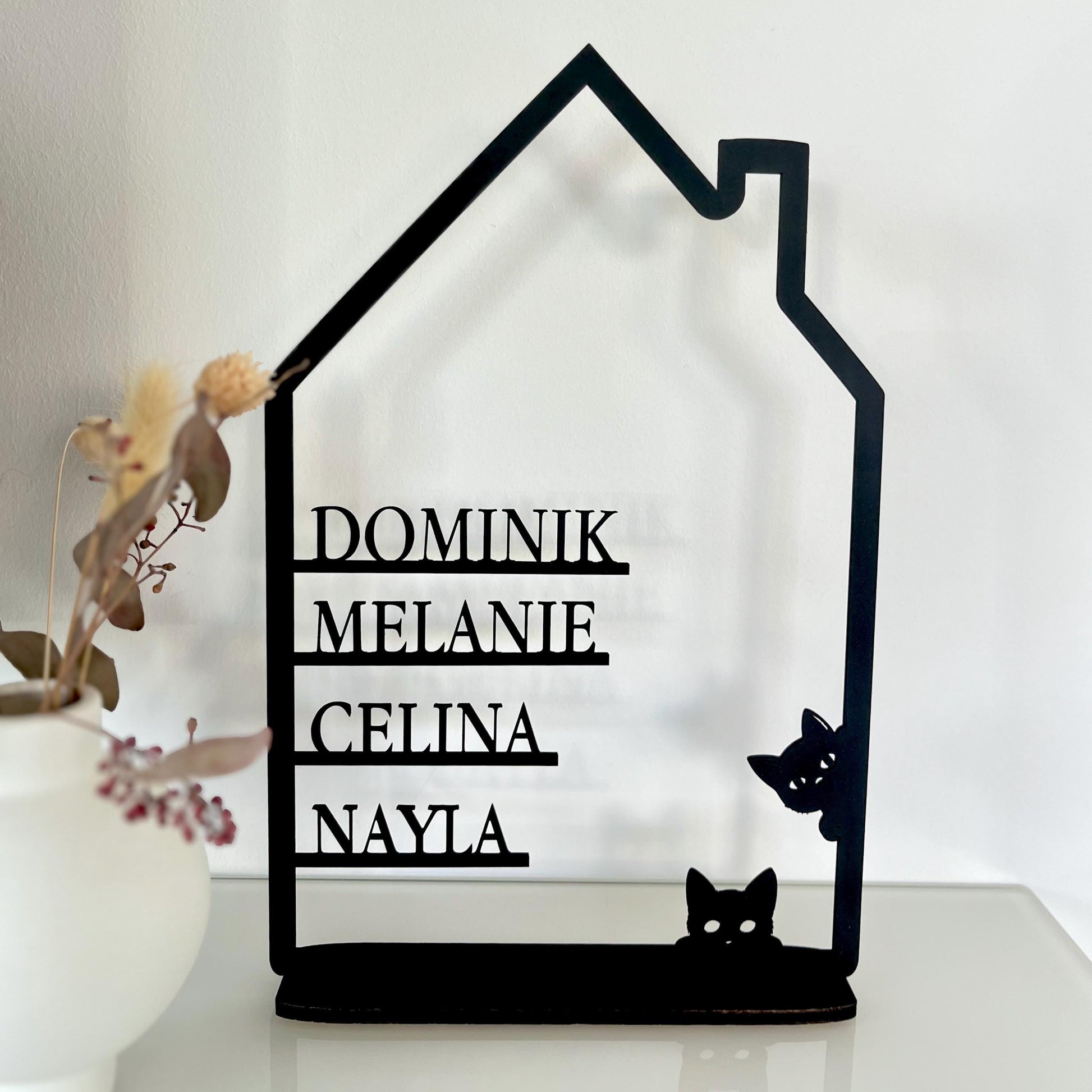🌟 Design: Hausform mit bis zu 6 Vornamen & Katzenmotiven