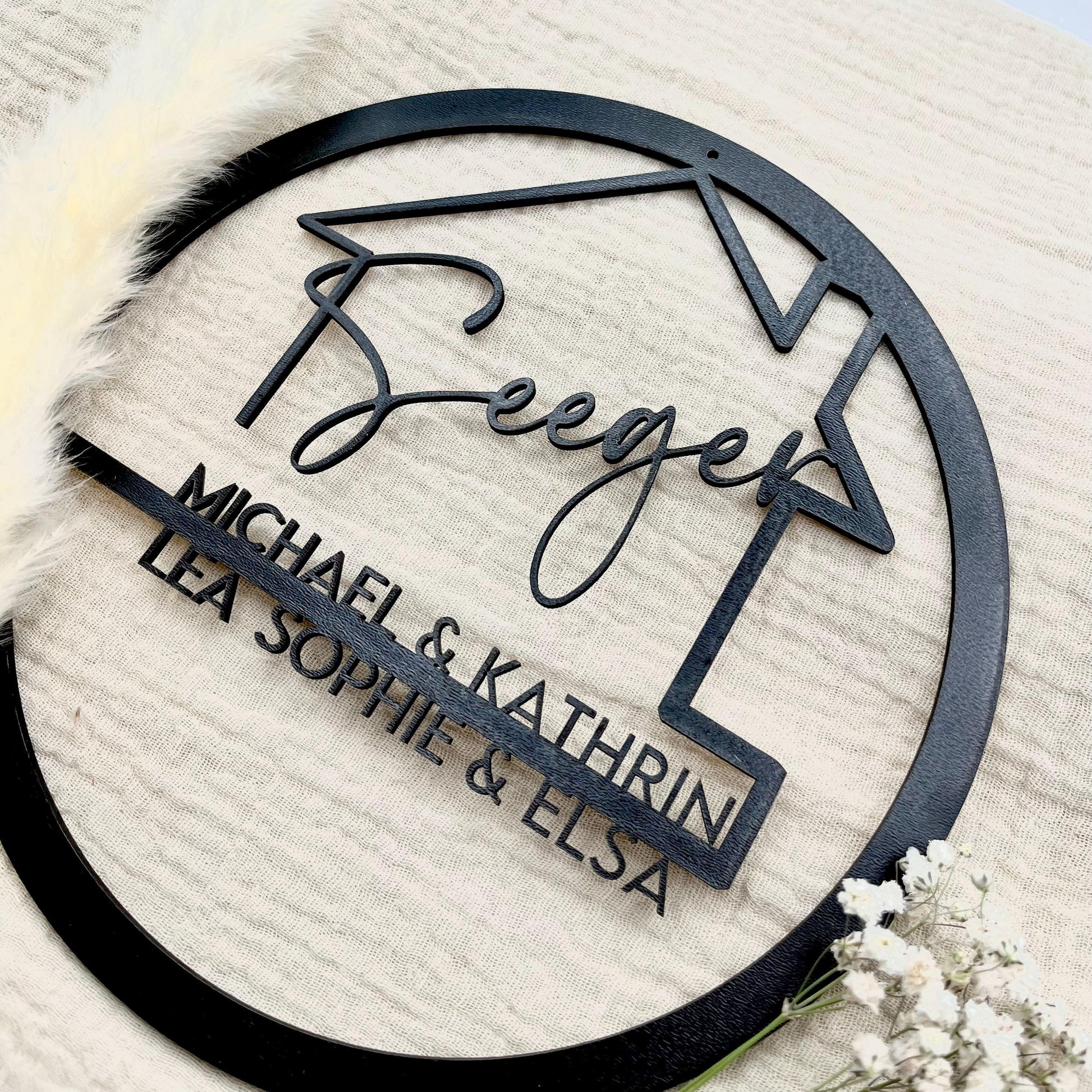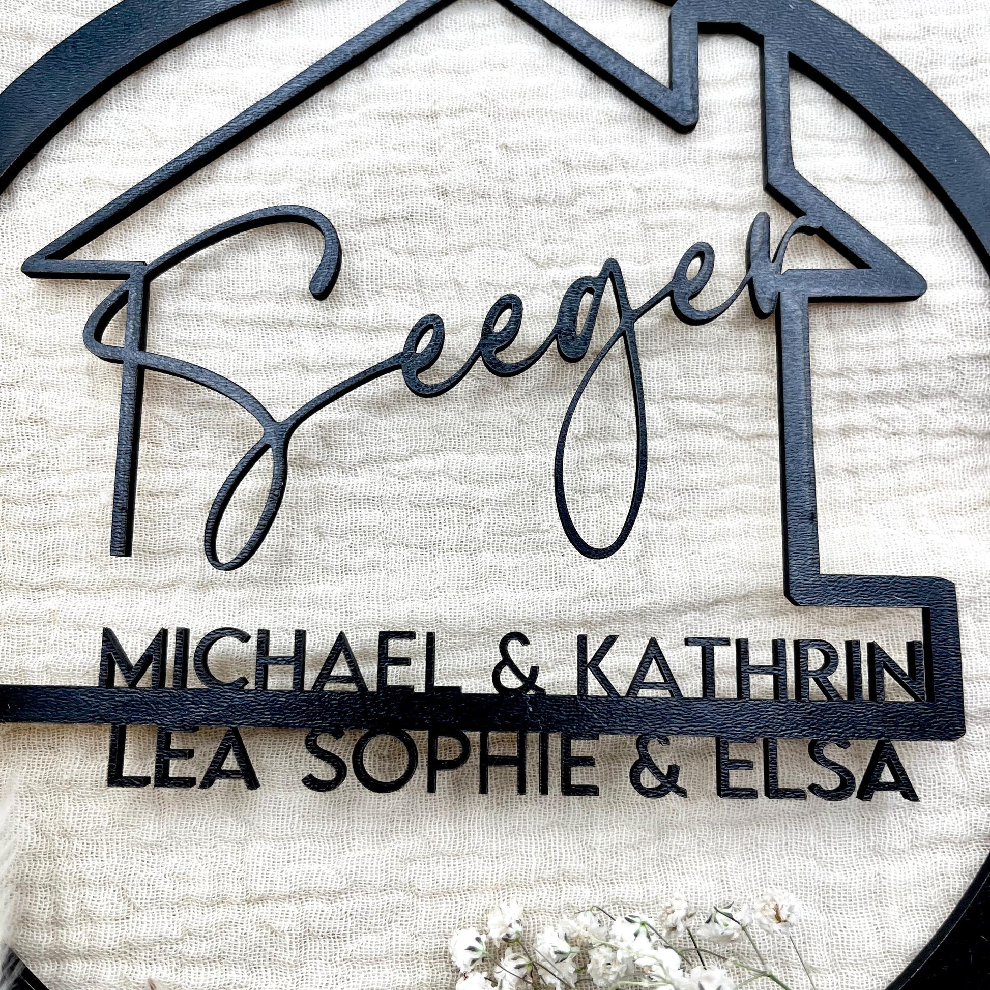 Ein Familienschild, das Zuhause, Liebe und Persönlichkeit sichtbar macht – individuell, modern und handgefertigt im Schwarzwald.