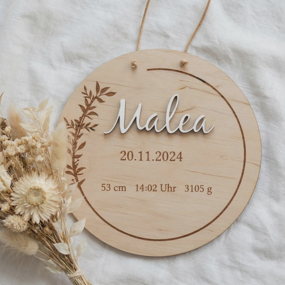 Geburtsschild aus Holz mit Geburtsdaten | graviert