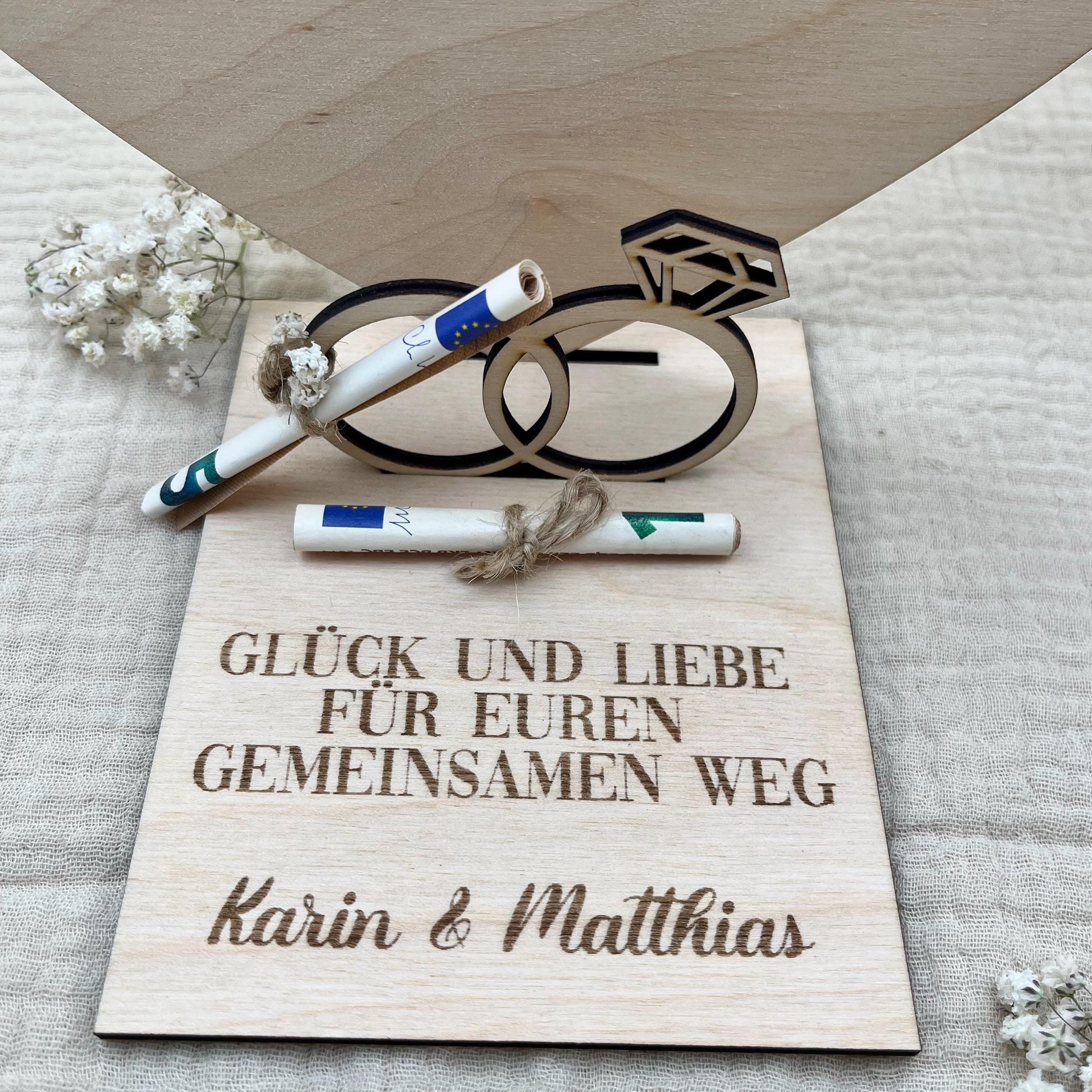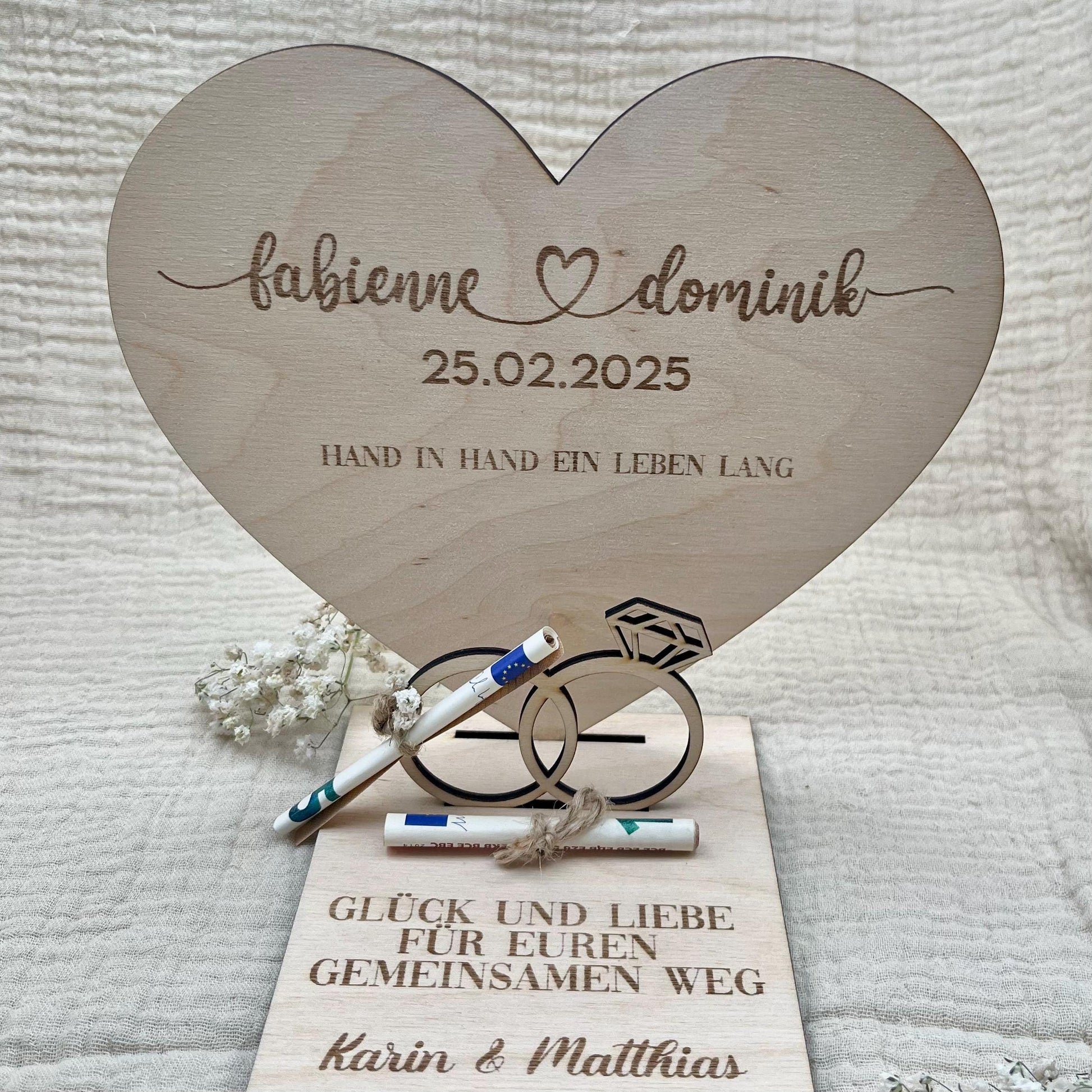 Dieses personalisierte Hochzeitsgeschenk aus hochwertigem Birkenholz ist mehr als nur ein Geldgeschenk – es ist eine bleibende Erinnerung an einen besonderen Tag.