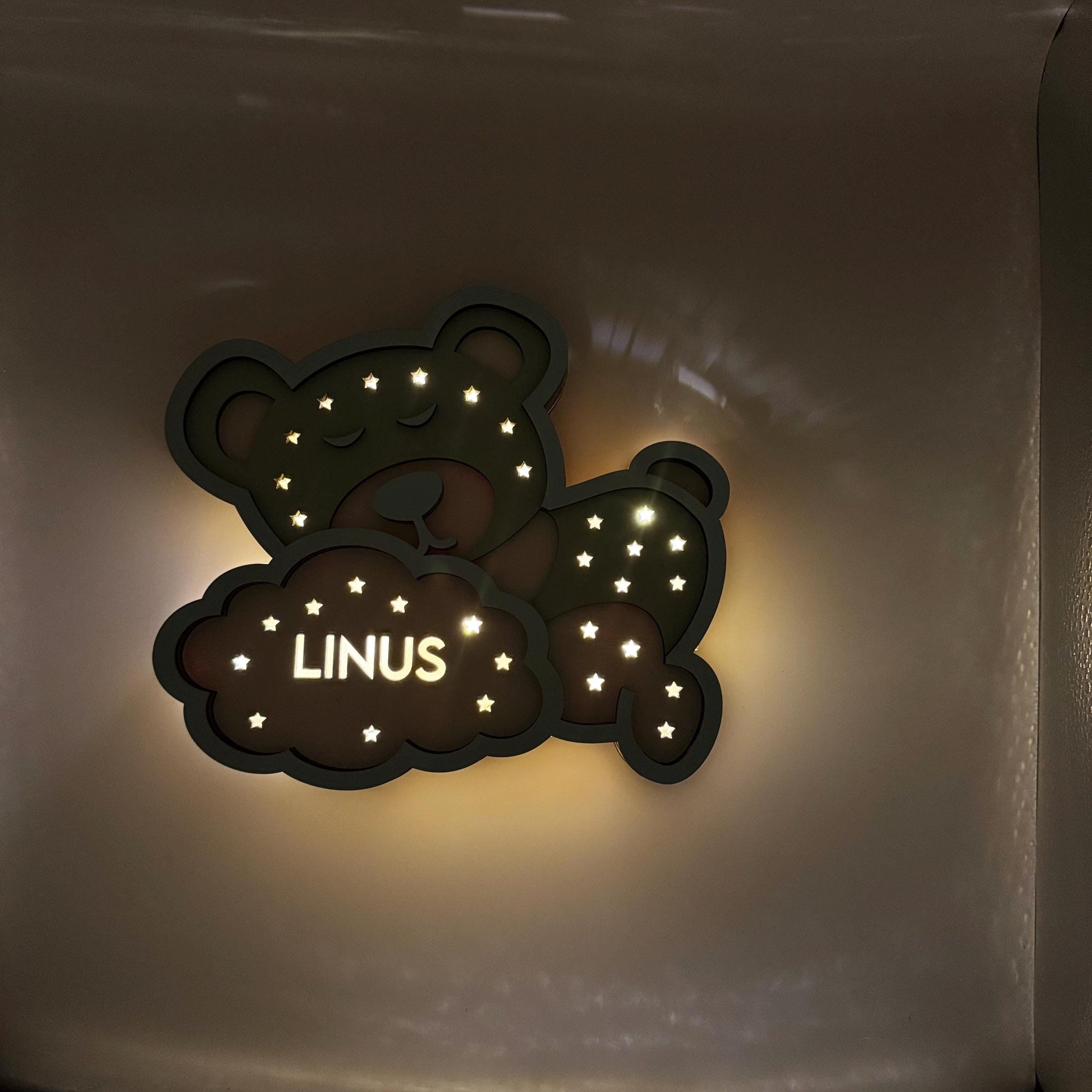 Personalisierbares Schlummerlicht Bär warmweißes Led Licht Geschenk Geburt, Taufe, Schwangerschaft, Kinderzimmer, Mädchen, Junge, Baby