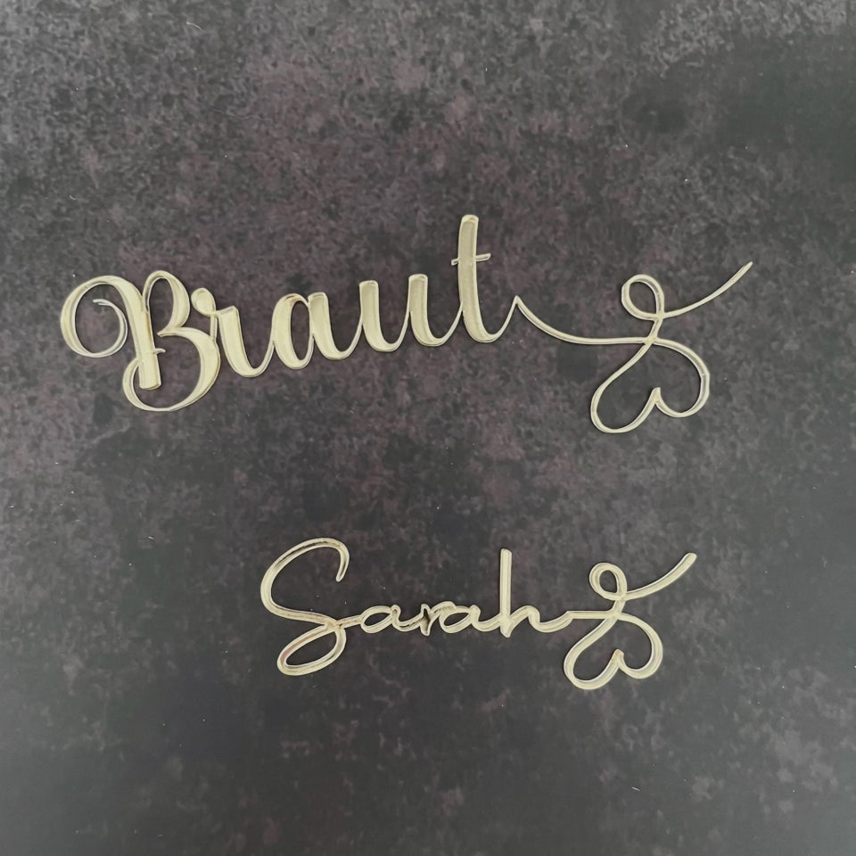 Die Bestellung unserer personalisierten Namensschilder ist einfach und schnell. Sie müssen lediglich die Namen und eventuell zusätzliche Informationen angeben, und wir kümmern uns um den Rest. Wir garantieren einen schnellen Versand, damit Sie rechtzeitig alles für Ihre Hochzeit erhalten. So können Sie sich ganz auf die Planung Ihres besonderen Tages konzentrieren, ohne sich um die Dekoration sorgen zu müssen.