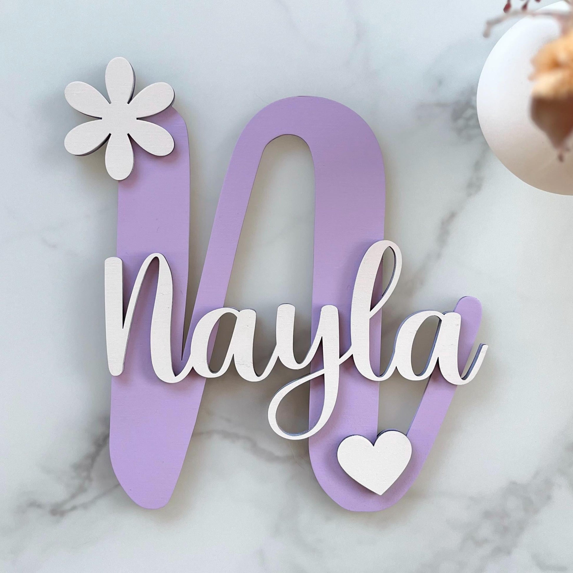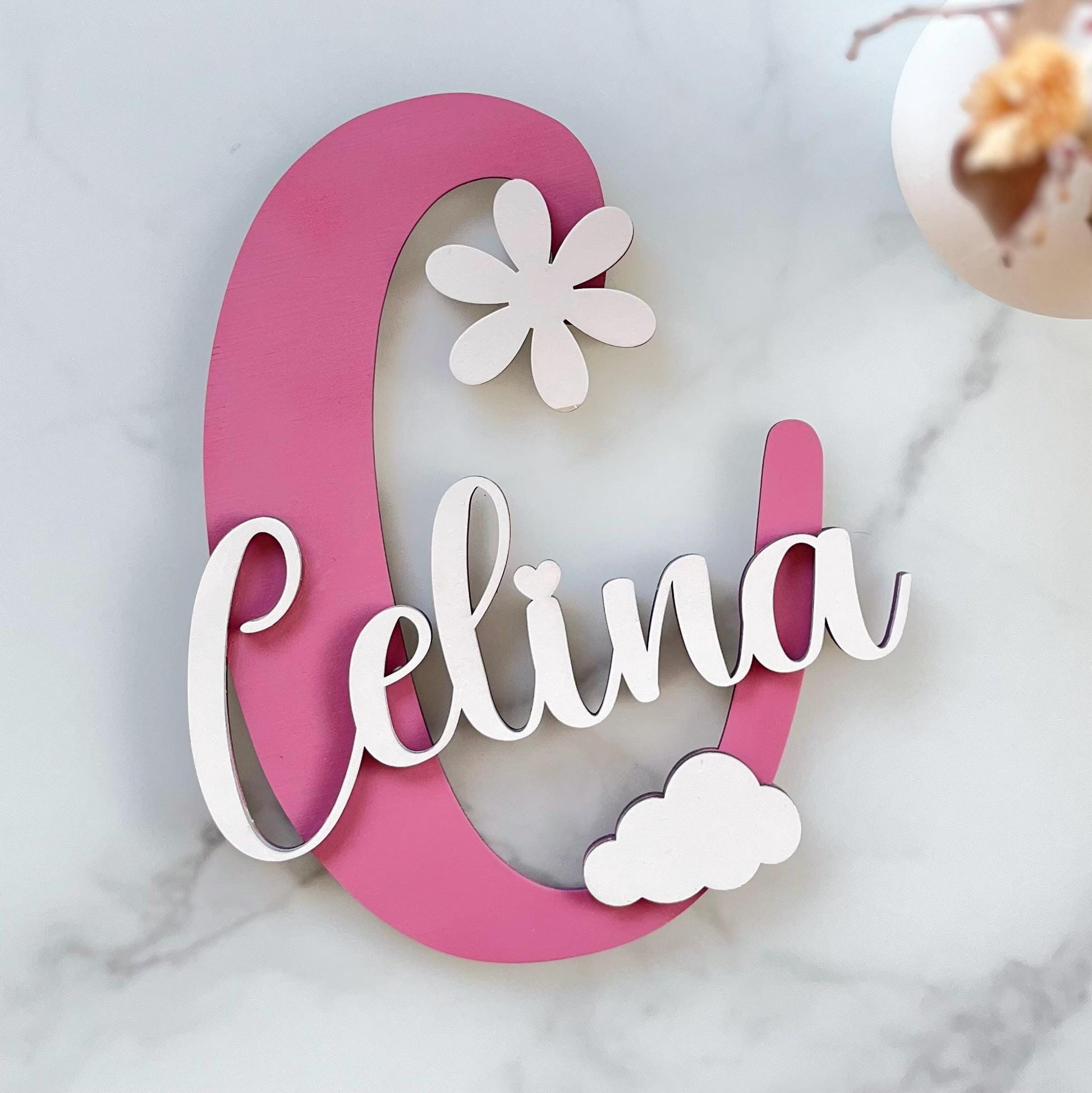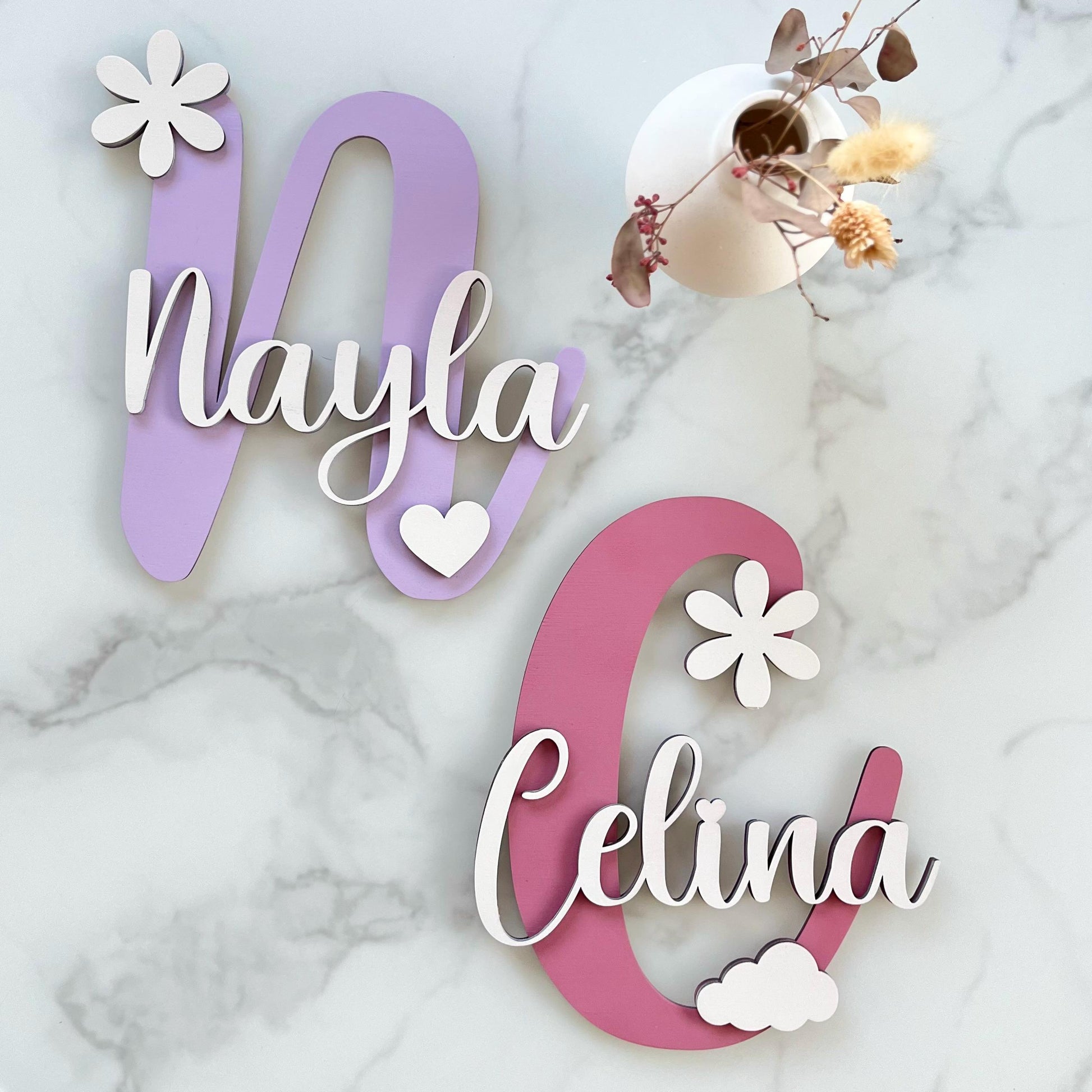 Handgefertigtes Namensschild aus Holz mit 3D-Schriftzug und Symbolen – personalisierbar in Wunschfarben. Perfekt als Türschild, Kinderzimmerdeko oder Geschenk zur Geburt & Taufe.
