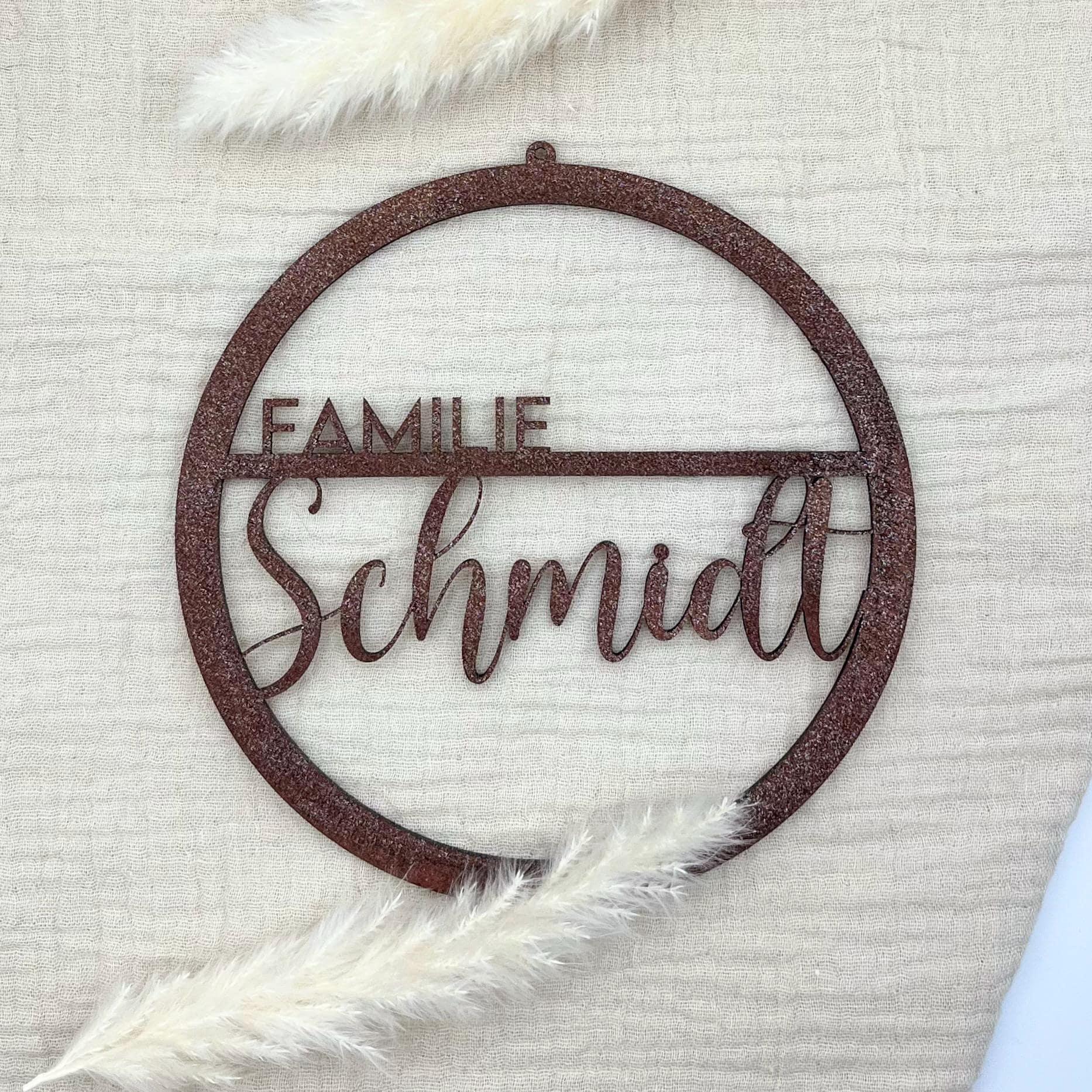 Personalisiertes Türschild Personalisiertes Türkranz Familie rost optik, Eingangstür, Haustür, Einzug, Hochzeit, Wanddeko, Hausbau Richtfest