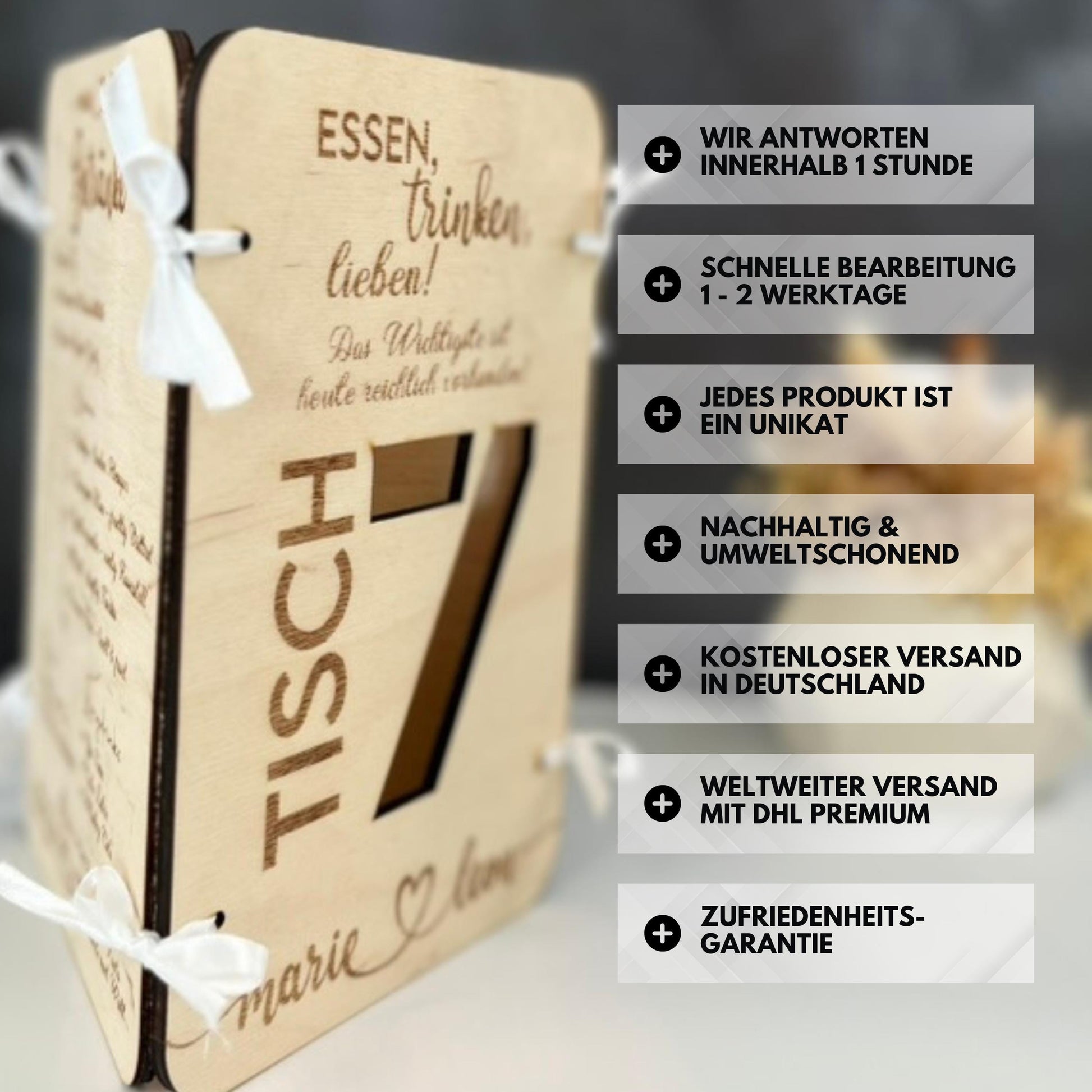 Ob Gravur, Holz oder Versand – wir haben schon fast jede Frage gehört. Und beantworten sie immer mit einem Lächeln (und manchmal mit Kaffeetasse in der Hand).